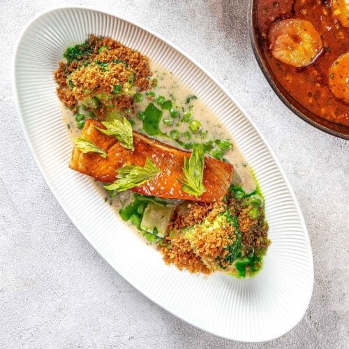 Форель на гриле c зелеными овощами